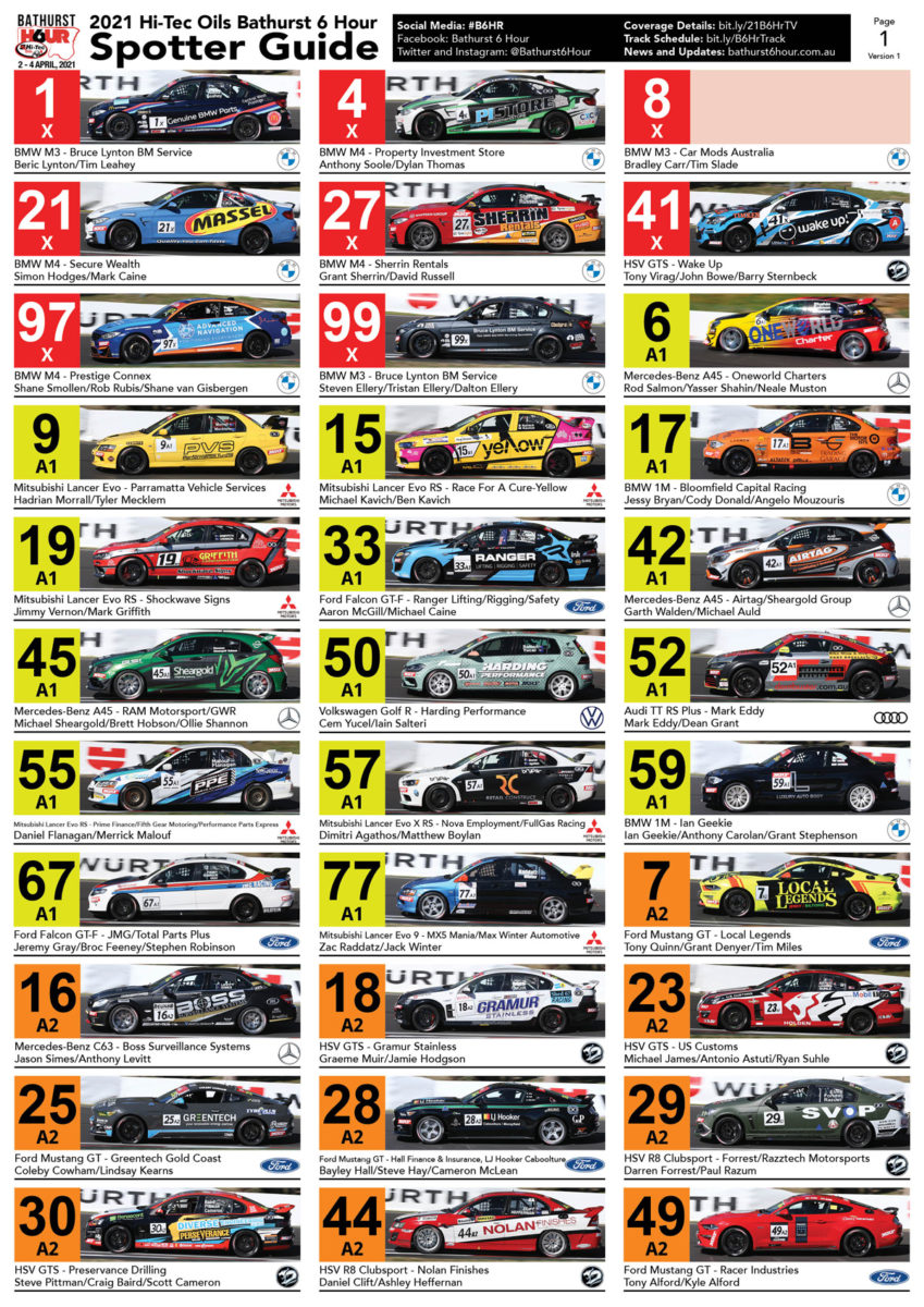 Every competitor outlined for the Easter main event at Mount Panorama, the Hi-Tec Oils Bathurst 6 Hour.