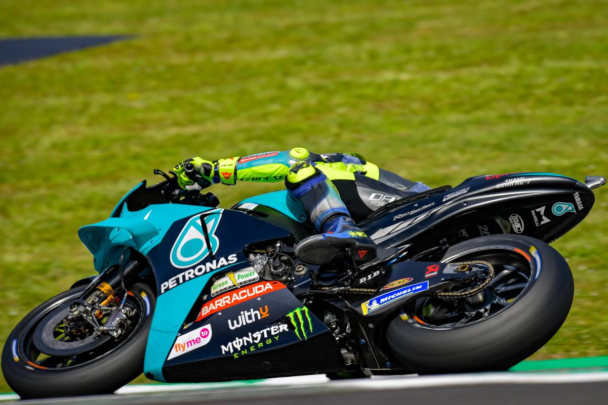 Valentino Rossi was 19th-fastest in Friday practice onboard SRT’s current-spec Yamaha, while Dovizioso propped up the 24-rider timesheet in his return to competition, riding Morbidelli’s old ‘A-spec’ bike.