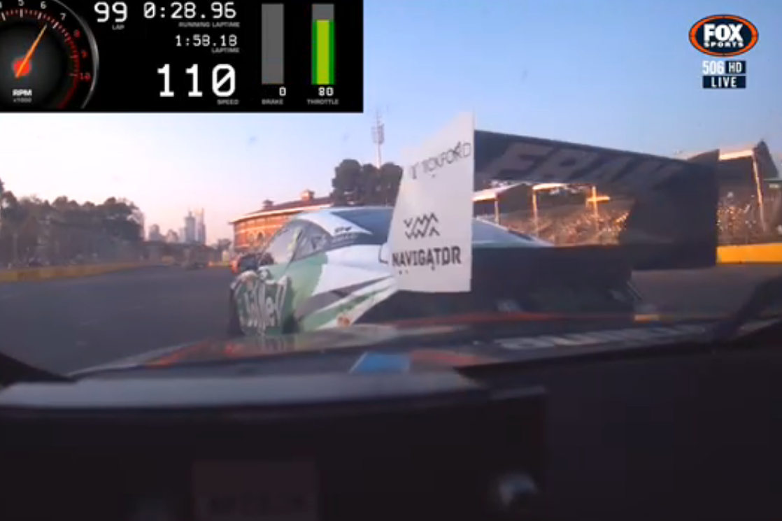 The Garry Rogers Motorsport driver made contact with Holdsworth’s Tickford Ford Mustang at Turns 4 and 5 early in the 25 lap heat at Albert Park which sparked a confrontation between the drivers in the pits post-race.