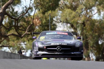 Erebus Motorsport’s Mercedes-Benz SLS AMG won the race earlier this year from Ferrari (Clearwater Racing) and Porsche (VIP Petfoods Racing).