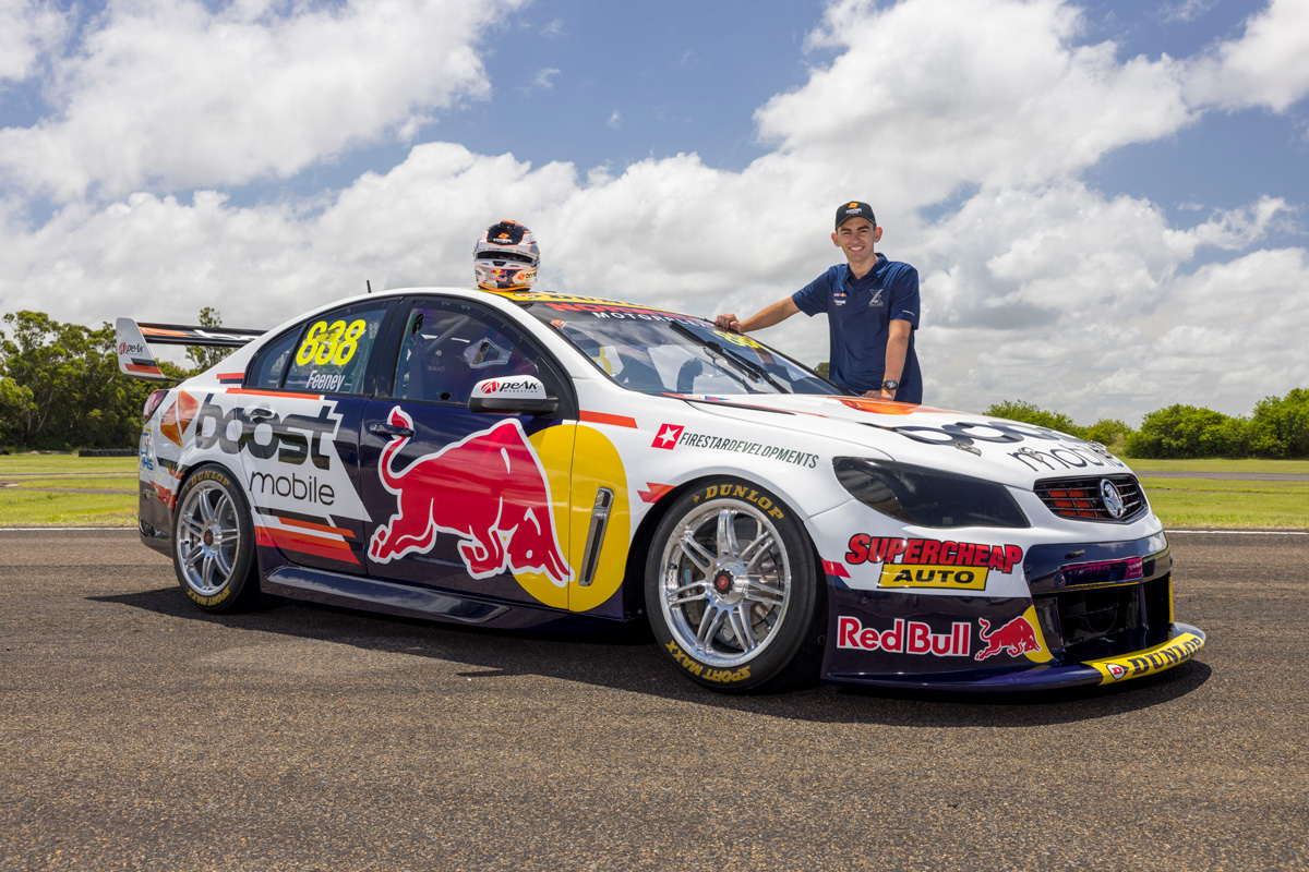 Feeney will race a #888 VF Commodore this year with prominent branding from Red Bull, Boost Mobile and Supercheap Auto.