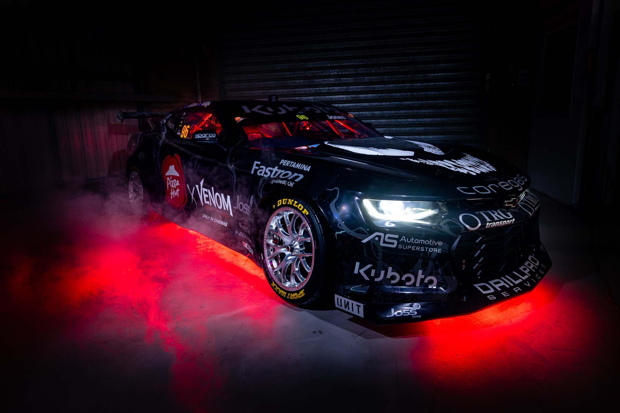 To mark the release of Venom: The Last Dance, the #96 Pizza Hut Racing Chevrolet Camaro will carry a black and white scheme with the famous face.