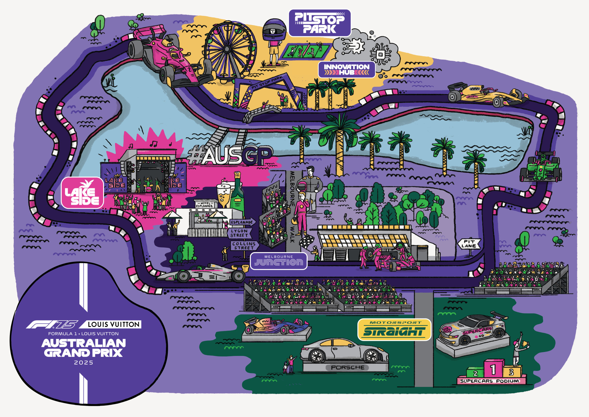 “The four precincts, Motorsport Straight, Pit Stop Park, Lakeside, and Melbourne Junction, will deliver something unique to each of the fans that come through the gates of the Albert Park Circuit.