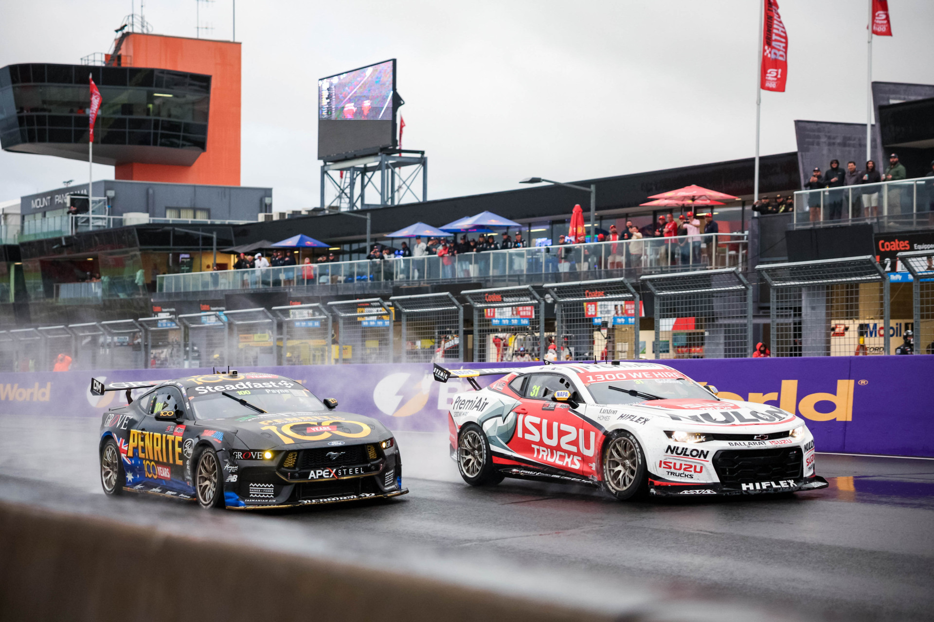 The battle between the Penrite Mustang and Nulon Camaro allowed Reynolds to close a near two second margin ahead of the last lap commencing.
