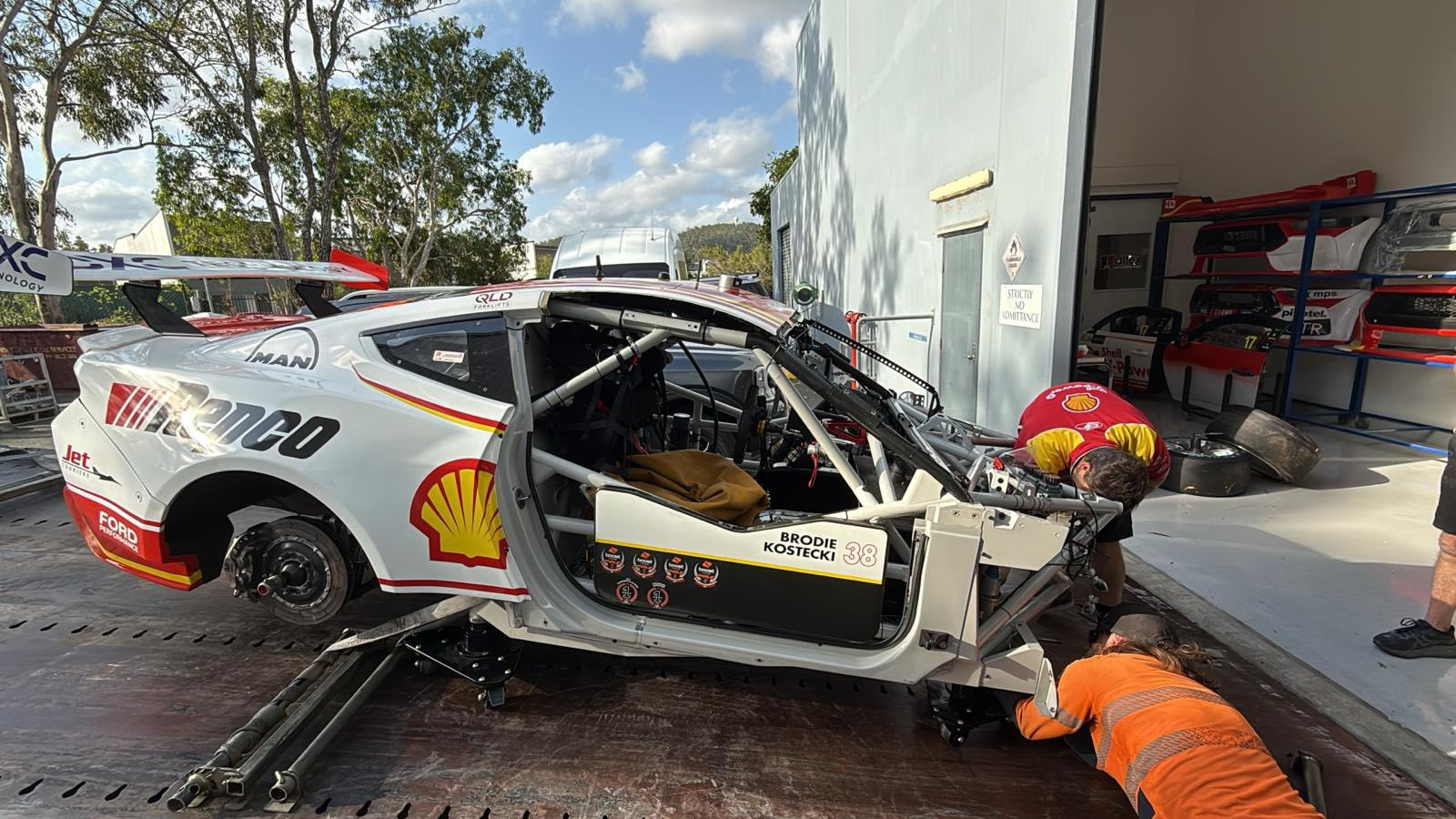 Supercars gave DJR permission to take the car off-site and it was stripped at DJR on Saturday afternoon before chassis repairs took place at Pace Innovations.