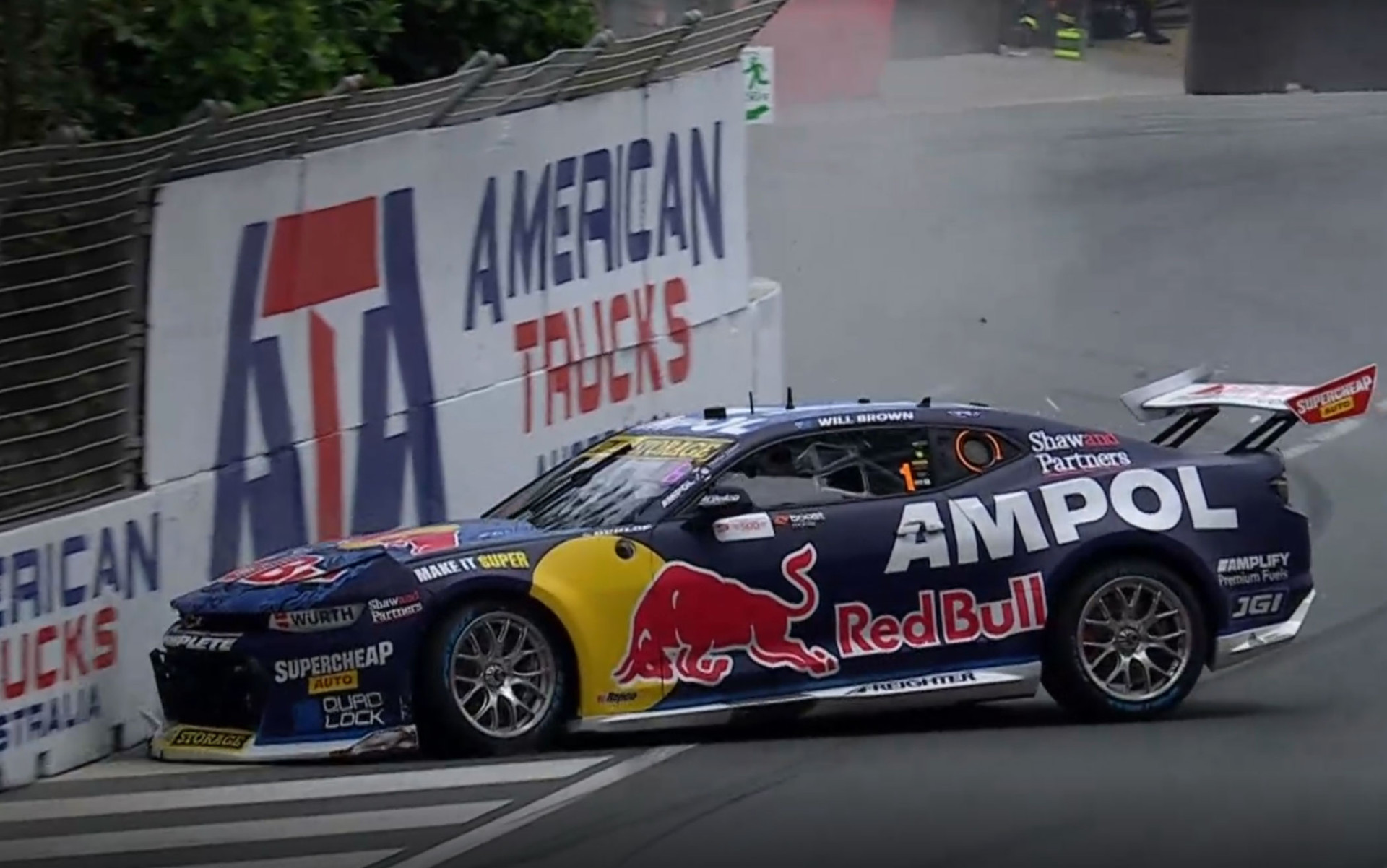 The Red Bull Ampol Racing Camaro driver lost the rear through the final part of the complex, smacking the concrete on the exit.