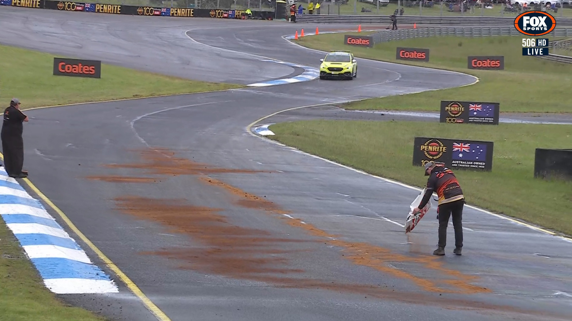 The oil appeared to flow from the #12 Holden Torana of Peter Burnitt, with a significant portion of the circuit – and the pit lane – affected.