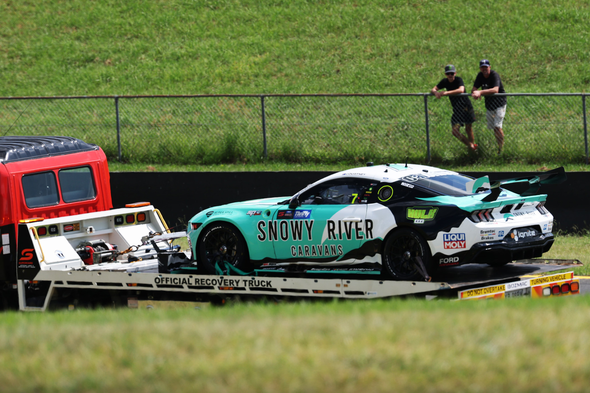 Lovei was on the far right of the asphalt when he veered the #3 CoolDrive Racing Ford Mustang to the left to scrub his tyres and drove into the path of the #7 Snowy River Racing car.