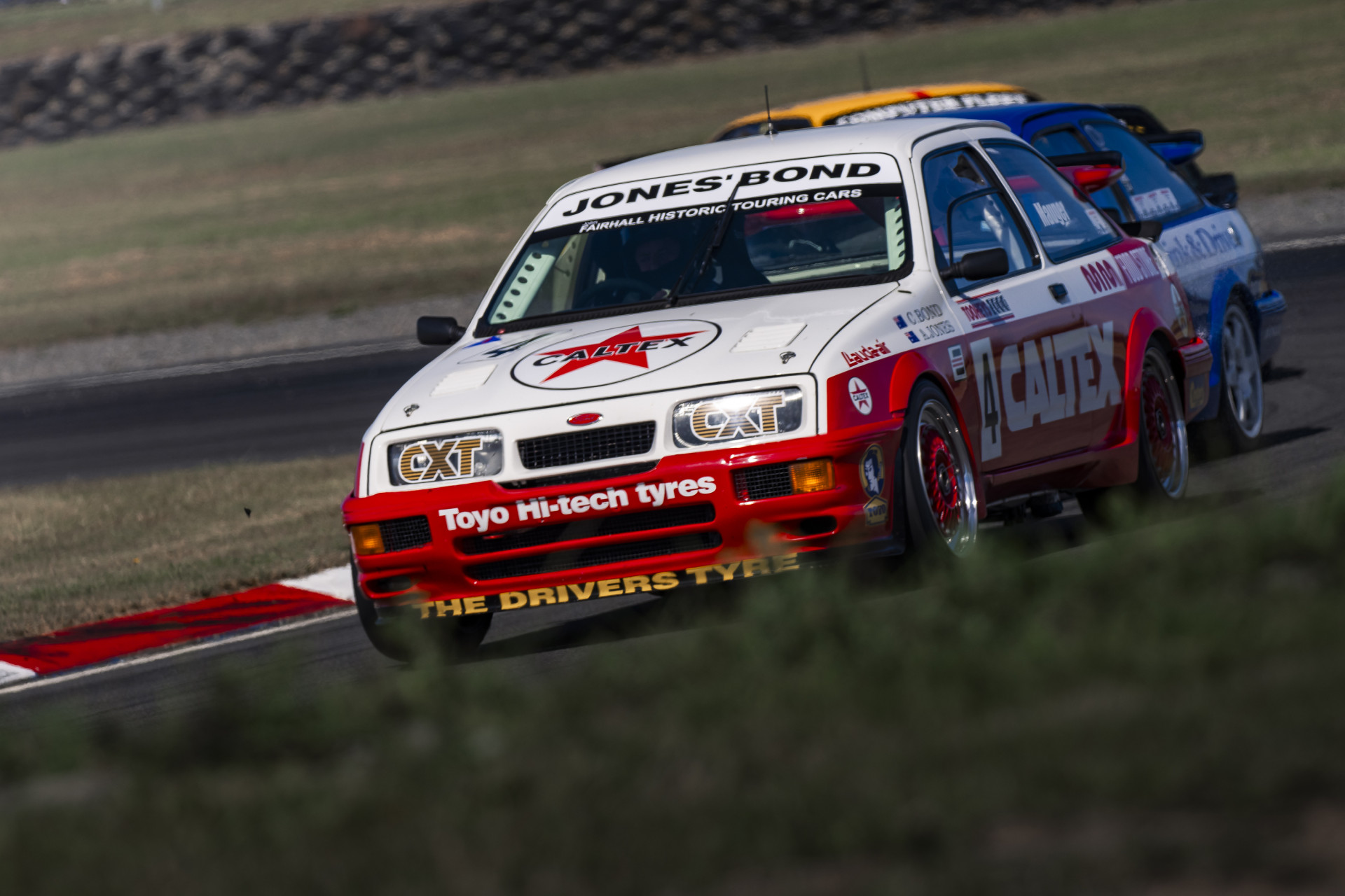 The Caltex machine is one of eight of the turbocharged Group A rockets entered in a 38-car field that also features Super Touring and early five-litre V8 cars.