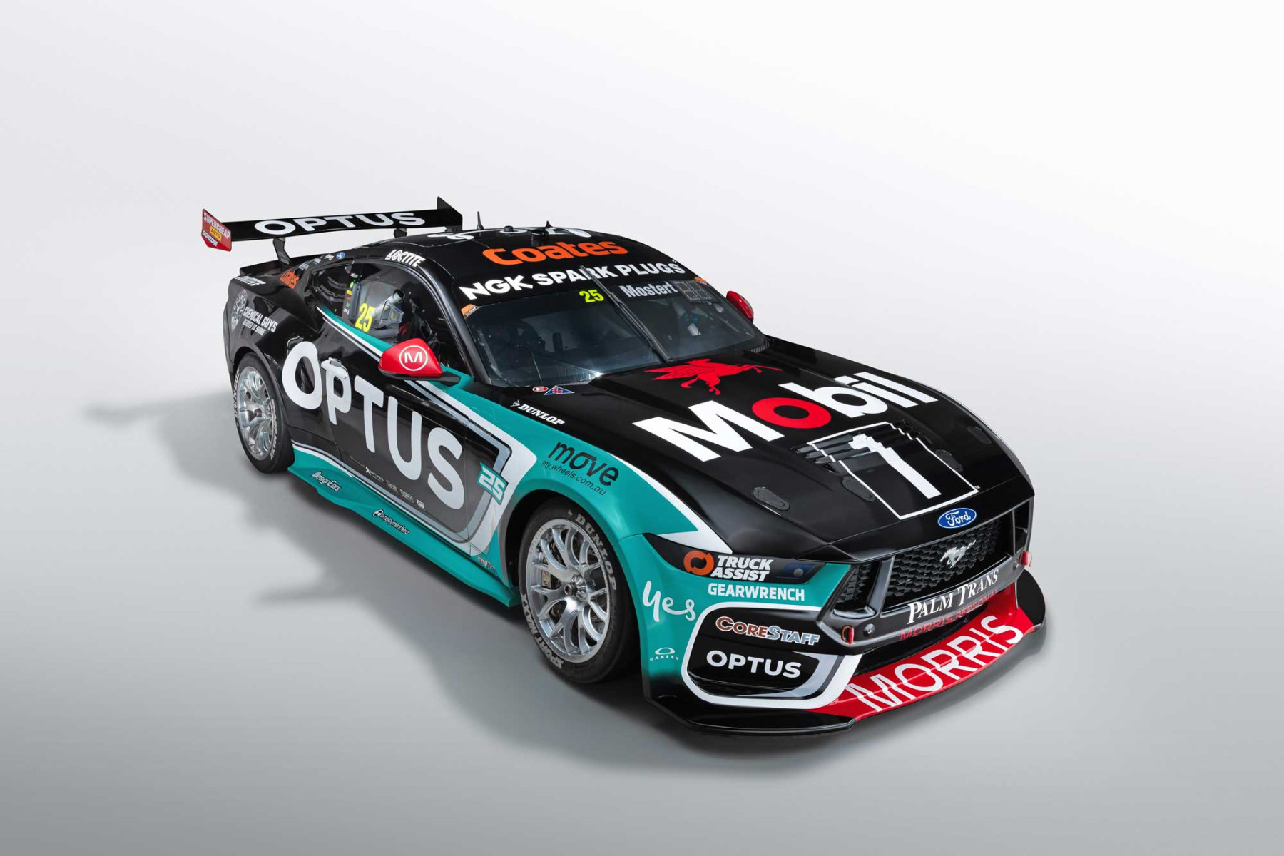 Chaz Mostert’s #25 Optus Ford Mustang in its 2025 livery.