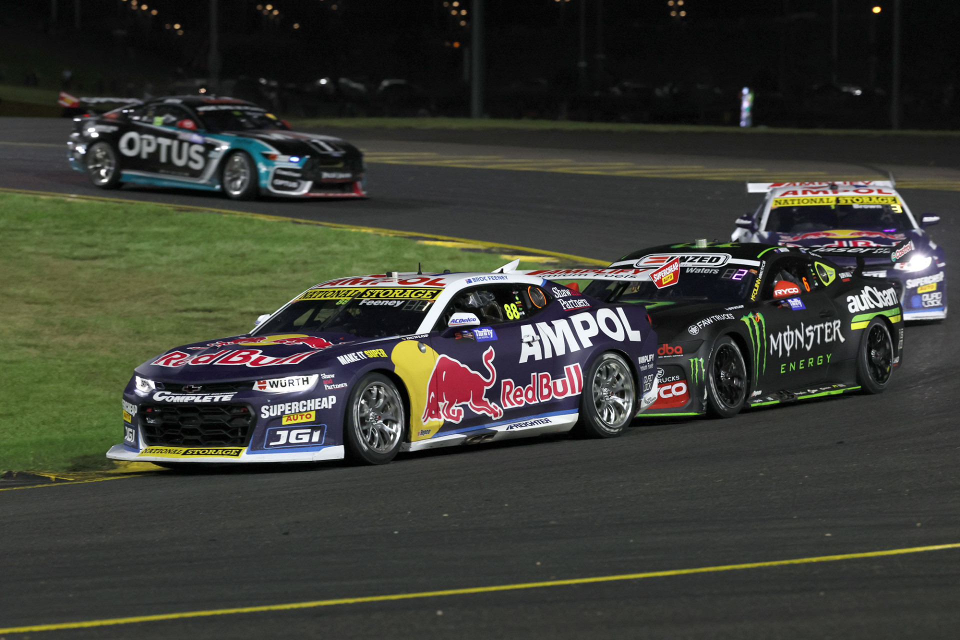 Waters went on to snatch the win from Feeney in the dying metres of the race after a final corner in which he’d bumped into the Red Bull Camaro.