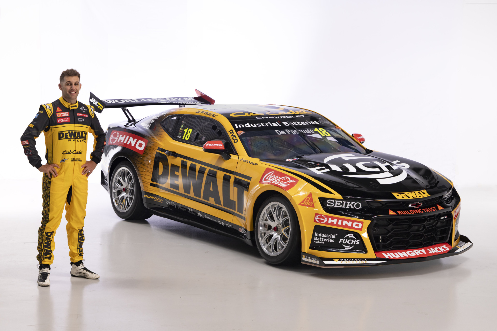 De Pasquale’s car will again race in the colours of Stanley Black & Decker brands DeWalt and Cub Cadet, while a subtle Chevrolet pattern has been added to the rear quarters as part of the factory status.