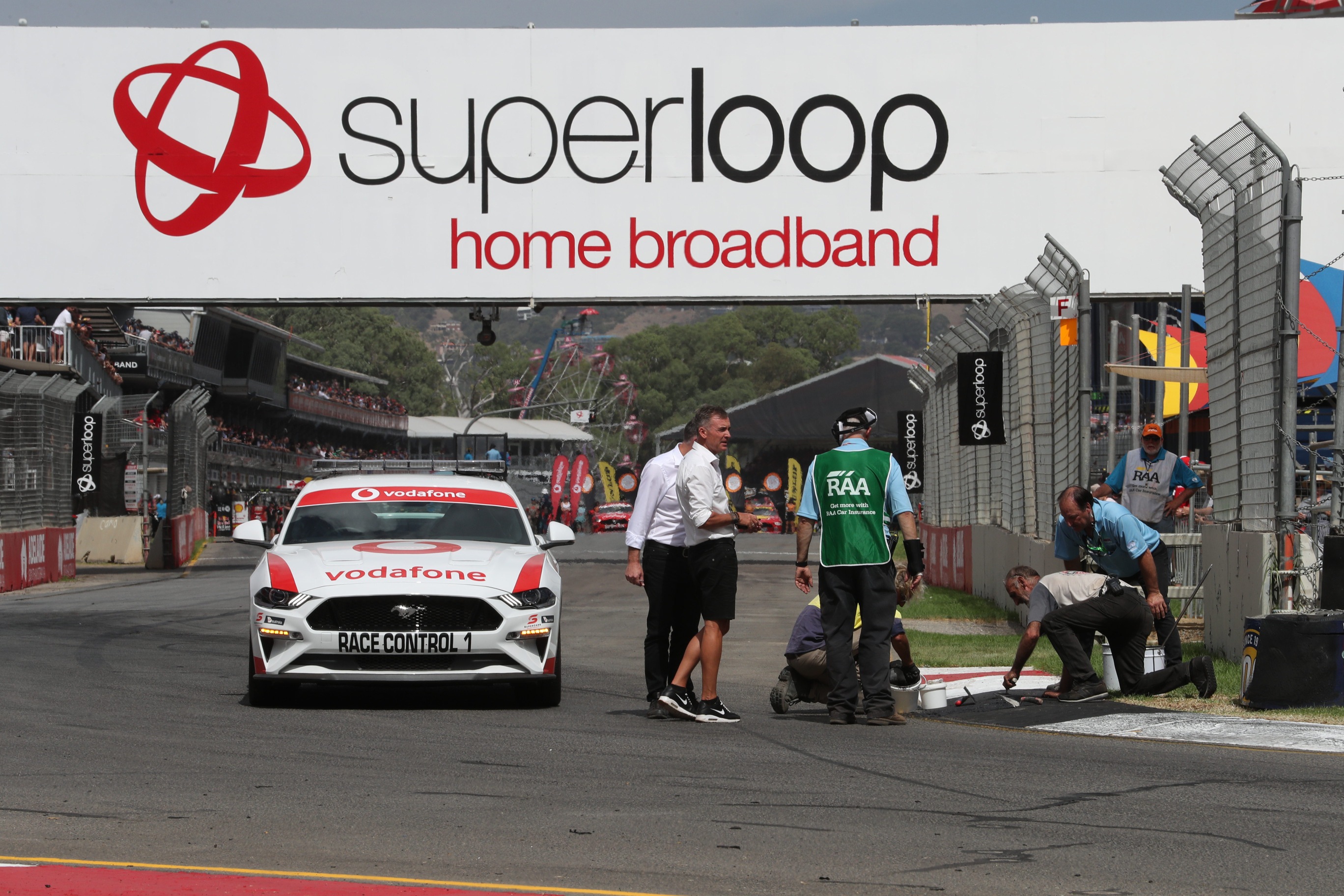 The start of Supercars Race 2 at the Superloop Adelaide 500 has been delayed as officials address an issue with the Turn 1 tyre bundle.