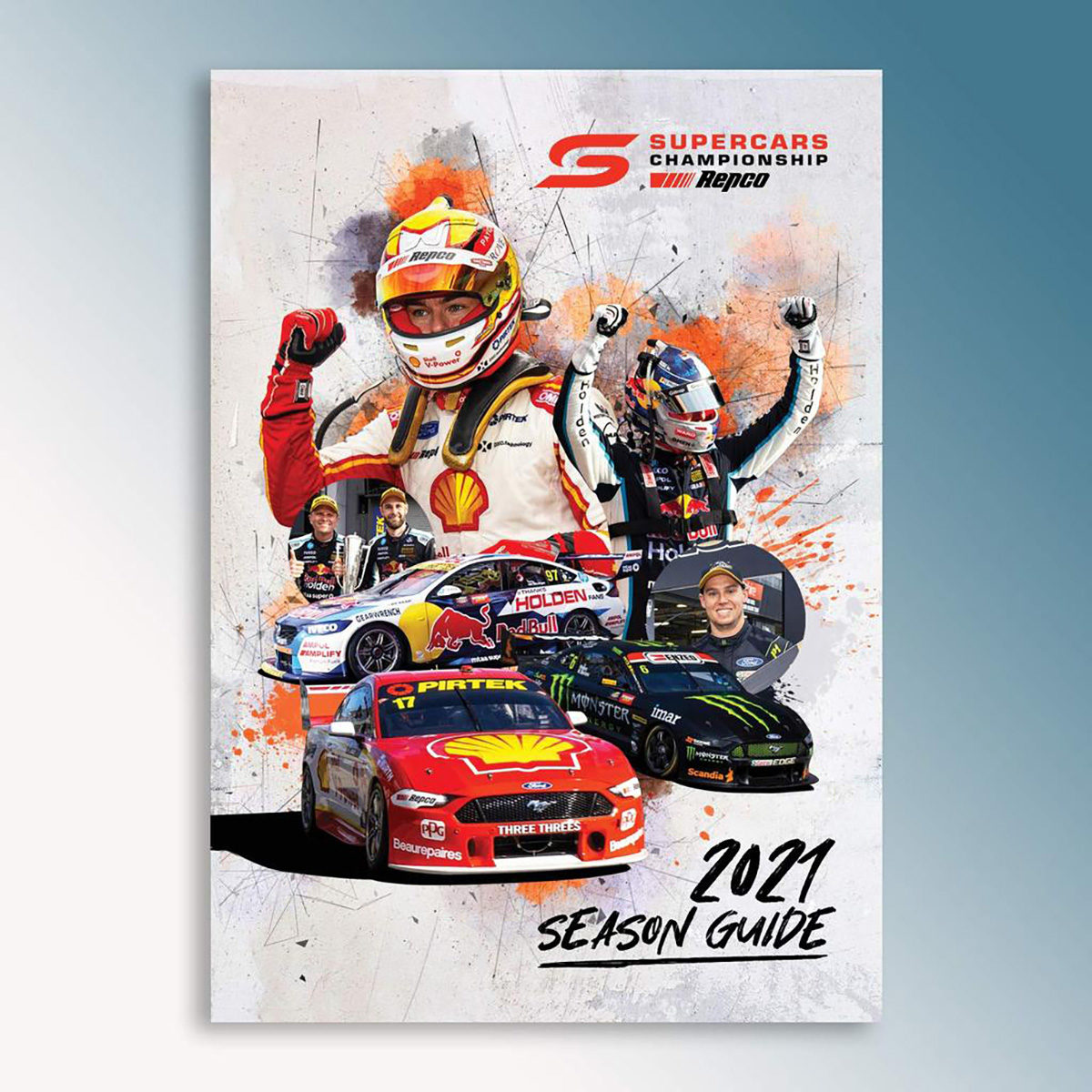The cover for the 2021 season guide celebrates 2020 champion Scott McLaughlin, Bathurst 1000 winners Shane van Gisbergen and Garth Tander, and championship and Bathurst runner-up Cameron Waters, who was voted the ‘Driver’s Driver’ by his peers last season.