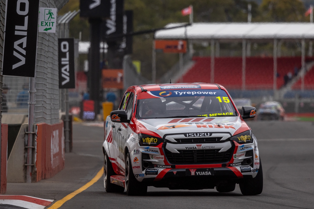 The 2023 runner up was 0.37s quicker than points leader Cameron Crick (Ford Ranger) with two-time and reigning title holder Cameron Crick (DMAX) third. The latter was able to have his SuperUte repaired after wall contact in the earlier practice session.
