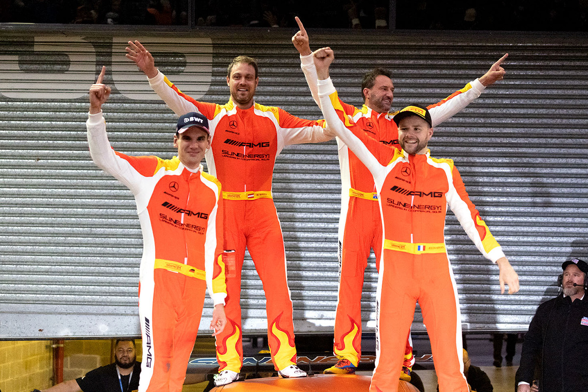 Jules Gounon led the #75 SunEnergy1 Racing crew of Kenny Habul, Martin Konrad and Luca Stolz to the top step of the podium in Sunday’s Mount Panorama endurance contest.