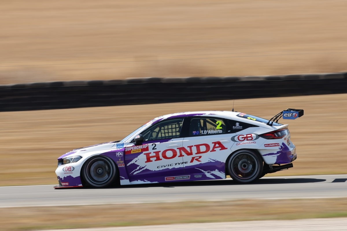 After the race was stopped and restarted, the Hona Civic FL5 driver was initially beaten off the start by reigning title holder Josh Buchan. D’Alberto quickly wrestled it back and led the Hyundai i30N home by 1.7s while Zac Soutar (Audi RS3 LMS) was a close third.