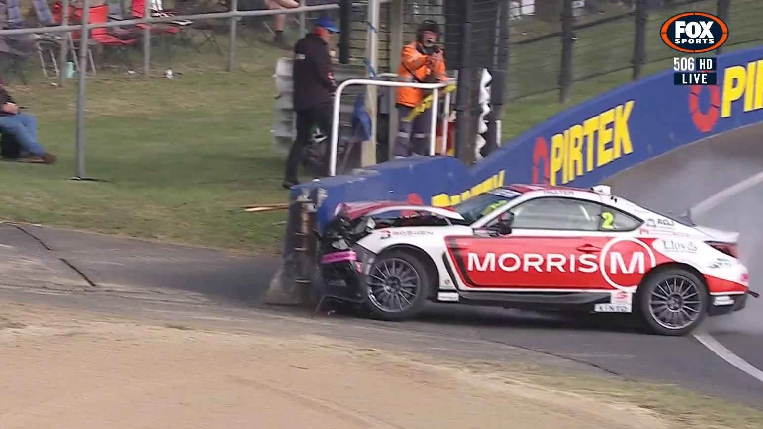 He hit the wall at the Grate, rebounded across the track to smack the inside wall and then across the track again for a third wall hit. Winded, he was able to extricate himself from the car before taken to the medical centre for precautionary checks.