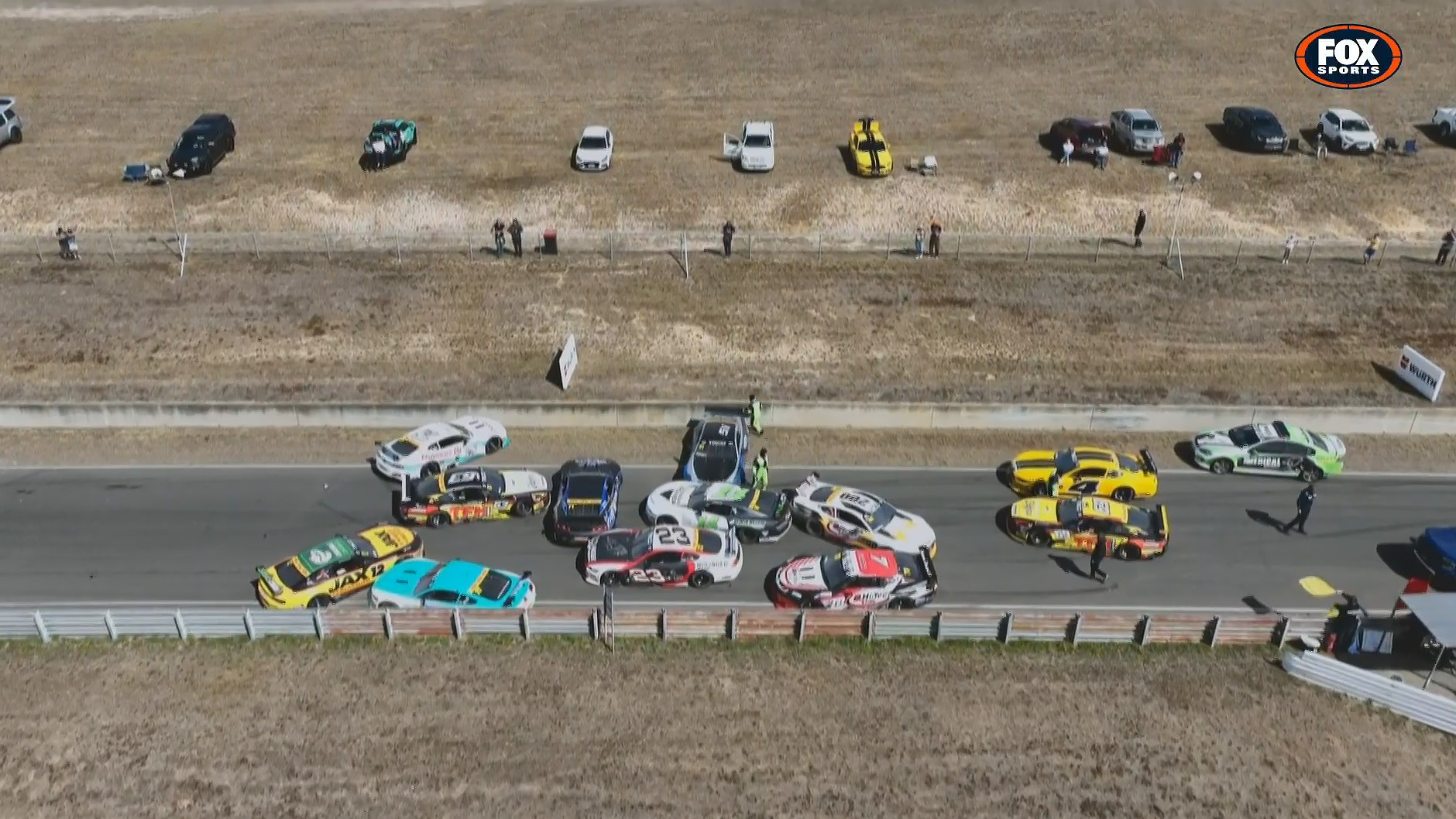 Moments later, the carnage kicked off in earnest. As the field tried to avoid the slow Golding and Morris cars, Adam Garwood tipped Mark Bailey into a spin.
