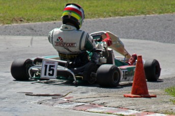Plumb and his fellow competitors in the Junior Rotax category found themselves challenging not only each other on the circuit but also a King Brown snake that hadit found its way onto the circuit mid way through the race.