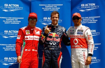 The Red Bull Racing driver clocked an impressive 1m 13.784s, Hamilton (McLaren), who had a new set of super-soft Pirelli tyres in Q3, had to be content with beating Ferrari’s Fernando Alonso to the front row with 1m 14.087s.
