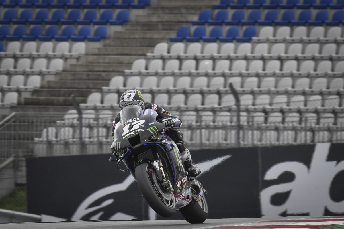 The factory Yamaha rider moved the marker to a 1:23.643s at the start of his second run before SRT’s Franco Morbidelli jumped from 10th to third, bumping Suzuki Ecstar’s Joan Mir off a provisional front row with a 1:23.810s.