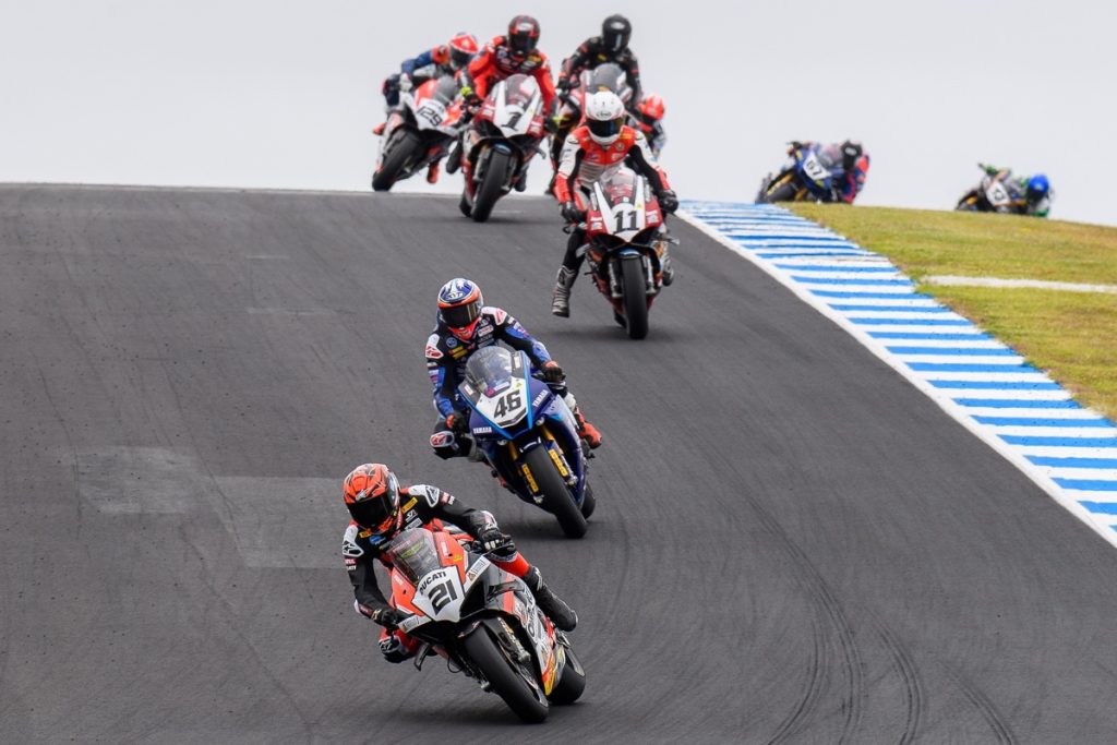 After he edged out Troy Herfoss (Ducati), and Yamaha YZF-R1M riders Mike Jones and Cru Halliday in qualifying, Waters blitzed the Race 1 start and set the pace in front as Herfoss struggled to get off the line.