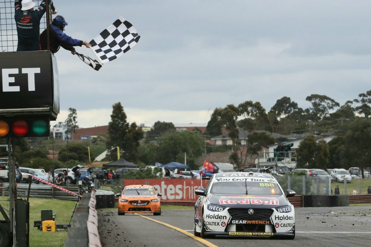 Whincup took the chequered flag just over 20 seconds ahead of Mostert, who had over three seconds on Holdsworth.
