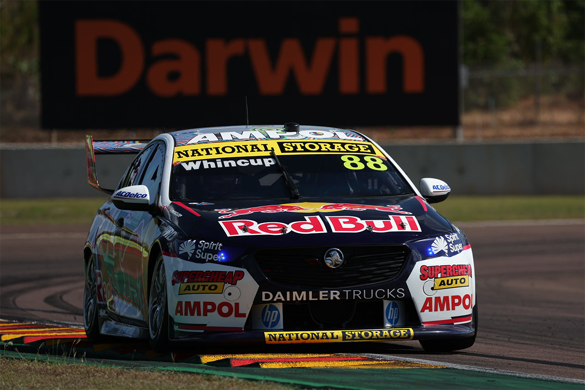 Jamie Whincup has gone fastest with the only ‘five’ of the day in Practice 2 for the Repco Supercars Championship field at the Merlin Darwin Triple Crown.