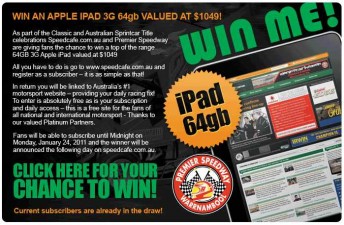You only have until January 24, 2011 to register for the prize – so get typing! CLICK HERE to subscribe now to Australia’s leading daily motor racing news source and go into the draw to win an Apple iPad 3G.