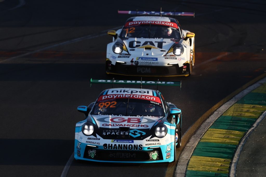 Wood started second on the grid, outpointed Porsche Centre Melbourne Motorsport’s Jones to the first corner and in a titanic effort, withstood the challenges throughout.