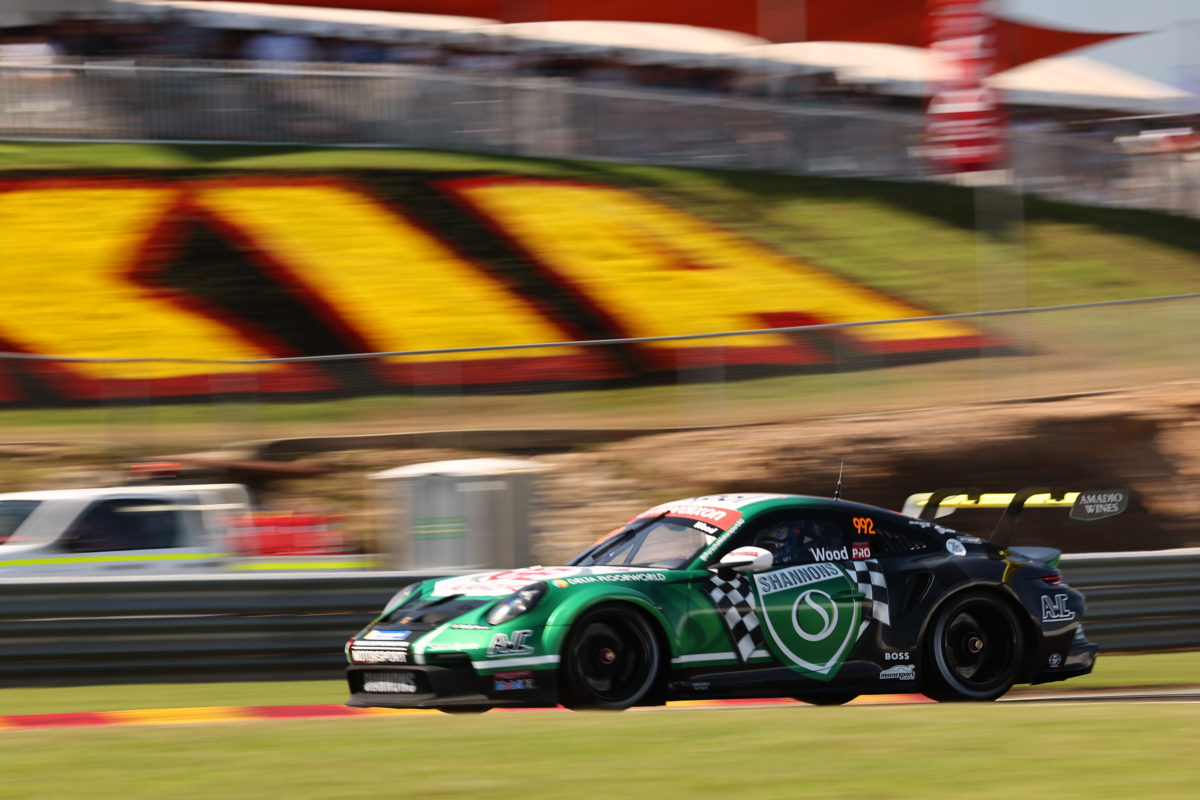 Dale Wood has won Race 1 from pole position at Round 2 of the Porsche Paynter Dixon Carrera Cup at Hidden Valley.