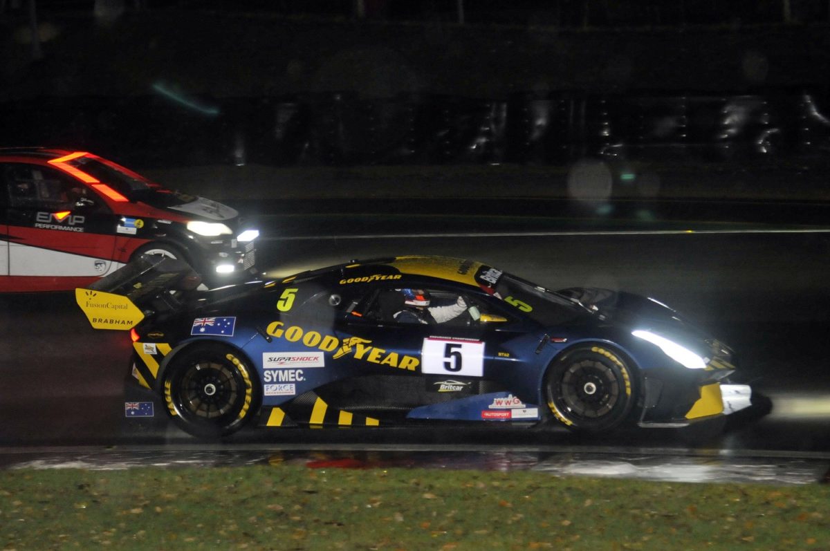 The Brabham BT62 has qualified on pole and won on debut in the hands of David Brabham and Will Powell at the Britcar Endurance Championship season finale at Brands Hatch.